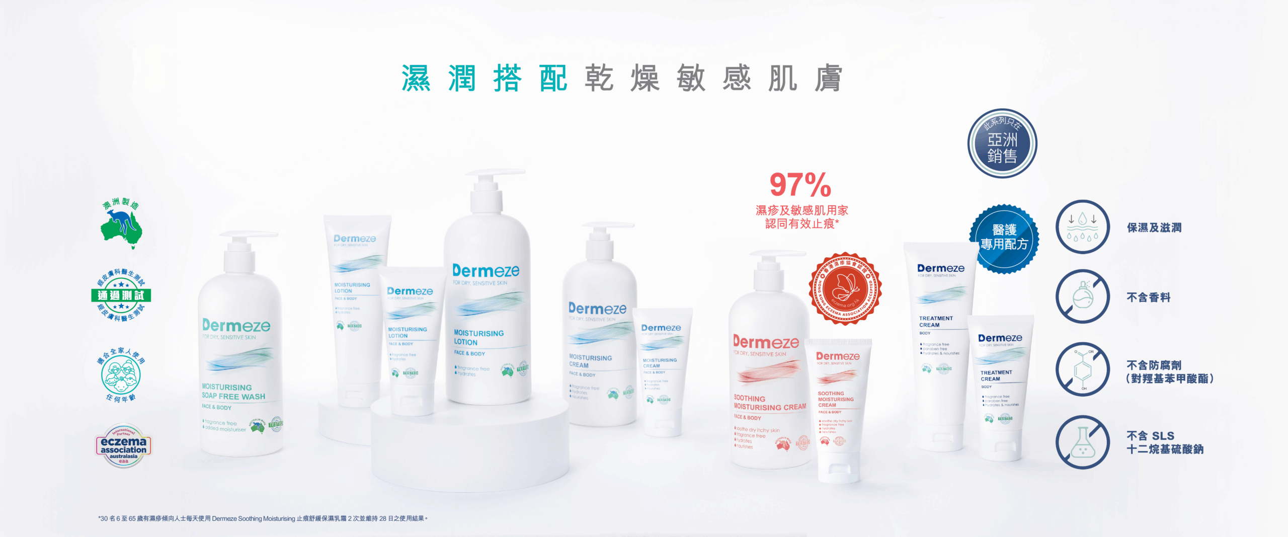 Dermeze 獨特的MoistureMatch 系列適合全家人使用,