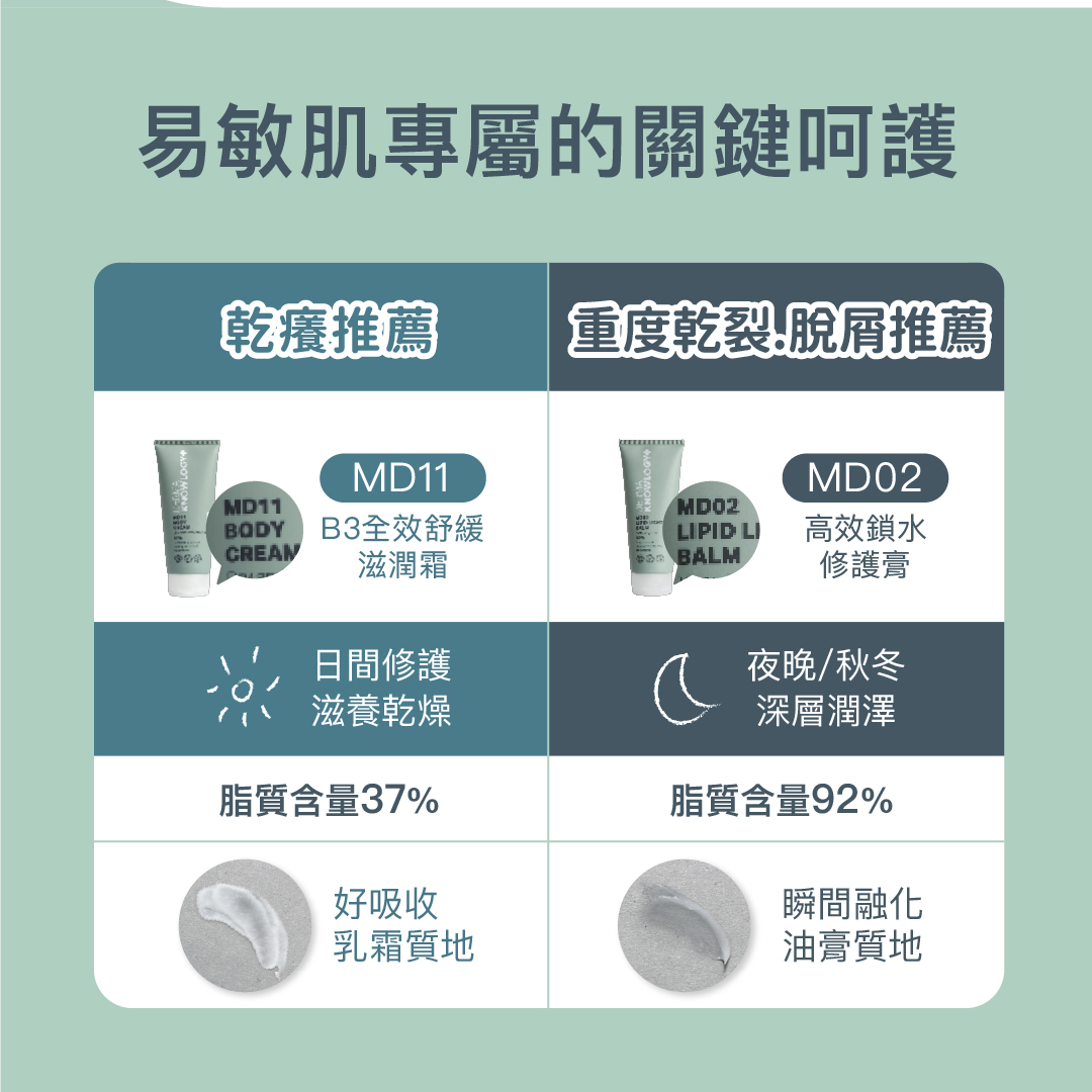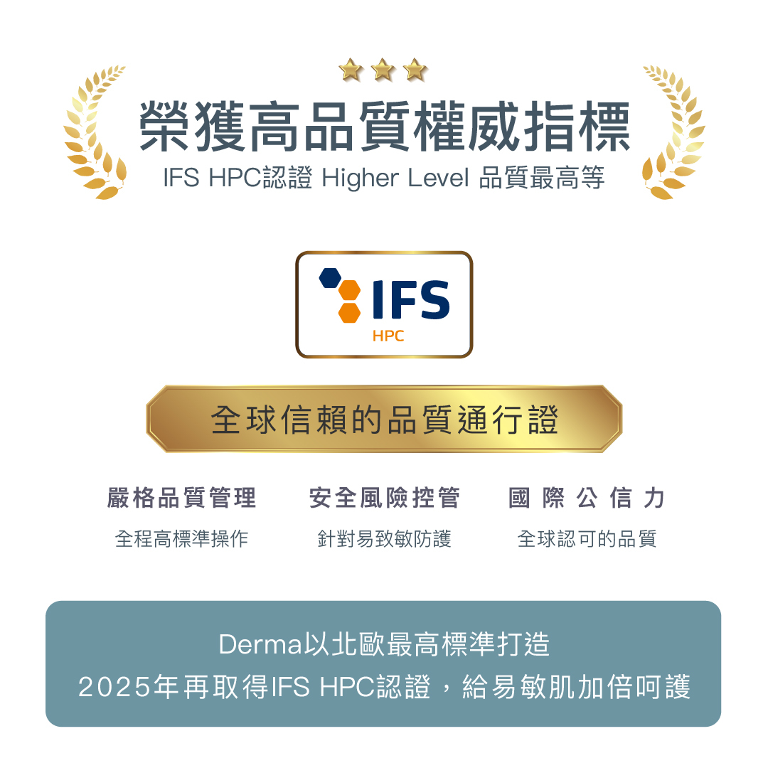 丹麥皮膚科醫師為易敏肌研發,添加獨家黃金三角修護配方及維他命B3,舒緩因乾燥引起的肌膚泛紅強化防禦力。乳霜質地好吸收不黏膩,全身及臉部皆可使用,讓肌膚重回水嫩光滑。