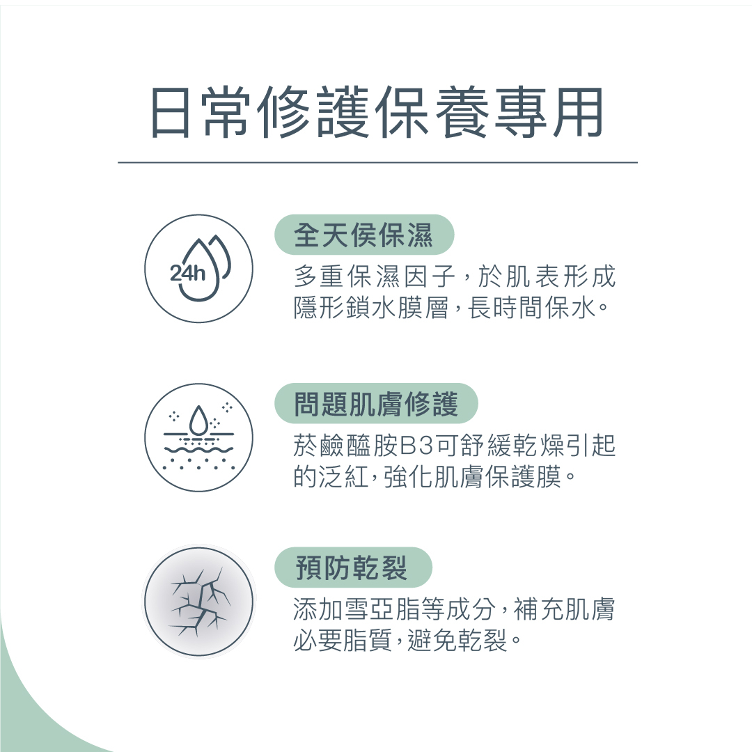修護肌膚、保濕補水、舒緩乾燥、安撫搔癢